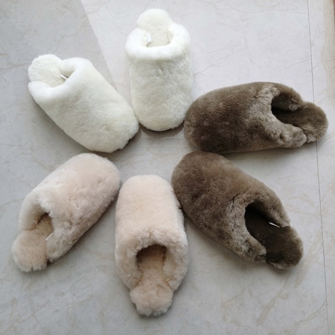 Zapatillas de Casa esponjosas, venta al por mayor, diseño clásico, sandalias de interior, cálidas, piel de oveja australiana auténtica, zapatos de invierno para mujer